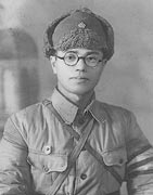 | 1946(昭和21)年 28歳 | 春3月、市内に移住、デパートの一隅で古本屋を開業、帰国の日を待った。 4月、ソ連軍引揚げ、共産八路軍の進駐、八路軍の水ぎわだった軍政には感嘆した。8月の引揚直前、収容所の同県出身難民の救援資金を市内の県人会で集め、1人千円、鳥取県難民40人分4万円(いまの金で4百万円)を届ける役を引きうけ、早朝出発、収容所を目指したが、町外れの小川の畔で八路軍兵士に拘束尋問され私が正直に難民の救援金を持参するのだといったら「我們不要銭、A走B」(俺たち金はいらん、行きなさい)といって放免してくれた。その兵士の態度を通して八路軍の高邁な革命精神に感動、彼等は必ず、その目的を達成するにちがいないと確信した。それから4年後、北京の天安門上に新中国国旗が翻った。 8月、ハルビン市日本居留民の集団帰国で帰国、生家におちつく。12月長男誕生。自宅で静穏な年末を送る。 この頃、新潟県村松の農業専門学校の高松先生(ハルビン時代の上司)から哲学の教師にとの招待があったが、満州での疲労感が脱けきれず辞退した。 |