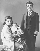 ![]() 1947(昭和22)年 ハルビンから引揚げた翌年 (妻芳子、長男哲治郎と) |