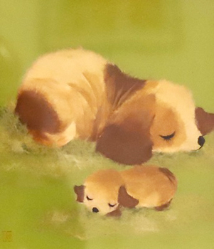 親子でお昼寝(習作) 式紙 島 勝代