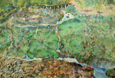 吹割れの滝(手をひかれ) 100号 大井八重子
