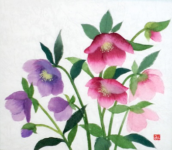 クリスマスローズ(習作) 式紙 松長三重子
