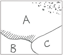 満開のつつじの山道を散策する気持ちで、楽しく描いてみましょう。和紙を知り尽くし、風景を描き慣れた作者が、とても簡単に表現出来るようにして下さっていますので、安心してチャレンジして下さいね。 下貼りを図のように3つに分割して貼っておく。