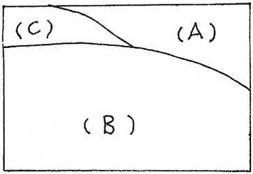 ○下色を貼る。(A)はブルー系2色を重ねる。(B)は淡いベージュ先染め典具帖。(C)は濃い緑と青緑むら染め。(B)はさらに左右の草むらの部分に緑系先染め典具帖2種を重ねる(青味の薄緑が下、黄緑が上です)。 |