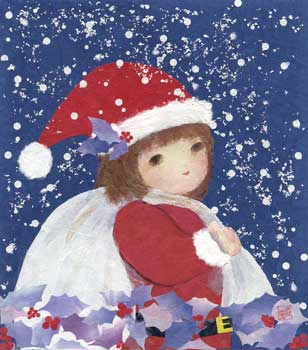 「少女シリーズ」でおなじみの作者が、久々にこんな可愛らしい原画を提供して下さいました。大きな袋の中身は何でしょう。「希望の種」がいっぱい入っているかもしれませんね。