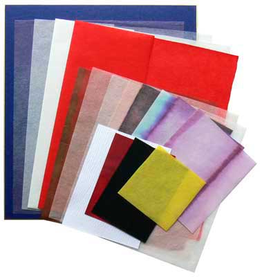 ◯袋の表情は、淡い紫と灰青折染め超極薄紙とベージュ(小判)、白典具帖で。
