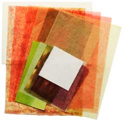 下準備…雅染めをA,B,Cそれぞれ鉄筆で切り抜き、貼る。緑系超極薄紙を、窪みとりんごの下1/3に貼っておく。 ※手漉き紙、手染め紙は、厚さや色合いが均一になりにくい場合があります。薄いかなと感じたら貼り重ねる、など工夫して使ってみてください。 (矢野) 2024年9月:季節の復活教材(オリジナル版とは入っている和紙や式紙が変更になる場合があります。) |