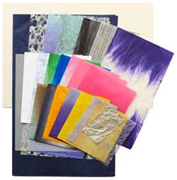 クリスチャンでなくても、クリスマスが近づくと、なぜか心ときめくものがありますね。みなの幸せを、世の中の平穏を祈りながら、心豊かにこの夜を過ごしたいものです。この絵を壁に飾って・・・。 ◯バック・・無地の濃紺を、全体に貼る。 ◯建物ほか・・必要な部分のみトレーシングペーパーを使って下さい。 ◯左のもみの木・・幹は黒と黒緑の絞り染め。葉は大穴落水紙。仕上げに白落水紙を所々に。玉は青、ピンク、紫、緑それぞれで。 ◯柊・・紫系折染め3種。適当に鉄筆で切る。実は濃いピンク系2種。仕上げに白や水色の落水紙を少々。 ◯星・・銀紙(越前の紙です)を細かくハサミで切る。細長く切って、さらに少し斜めに切っていくと、菱形に近い尖った形になって、光っている星に見えますね。 (純子) |