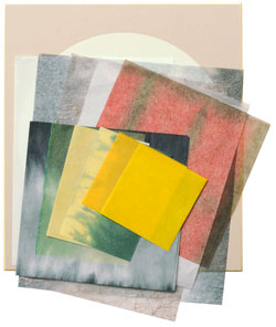 さらに、黄色と緑の折り染め典具帖紙を重ね貼りして色