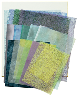 ⑤エメラルド色と黄緑のむら染め薄紙(典具帖紙)