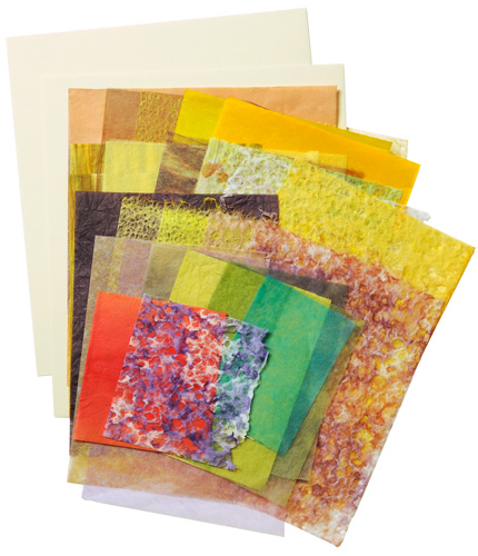 各種薄紙や⑤をつかって軽く色をつけます。