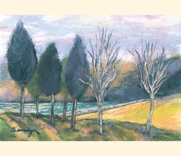 冷たい風と、日の暖かさを感じる、趣深い作品です。