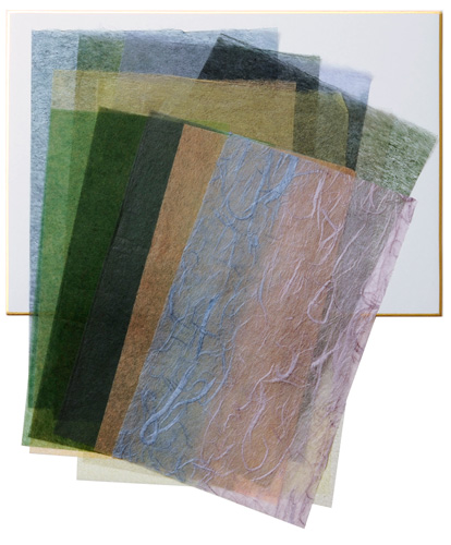 ⑨うす紙 くすんだ黄緑と深緑のむら染め