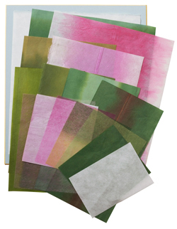 ⑯薄紙 淡い緑と淡い黄緑の折染め