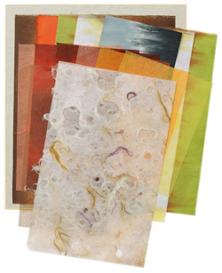 ⑦薄紙 暗い赤(幅広)と赤の折り染め(典具帖紙)