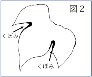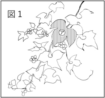 (ア)は①を葉の形に取ります。葉っぱの形を下描きしておき、