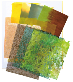 ⑫大穴落水紙 黄緑と緑と茶の顔料むら染め