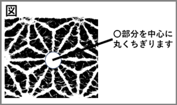 図の〇部分が中心になるように花の形にちぎります。