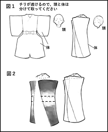 図1を参照し、体部分のみを①で取り貼ります。