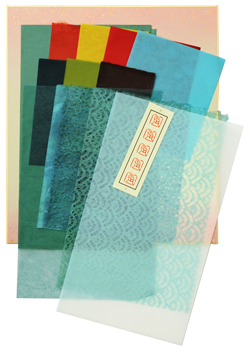 式紙のピンクの幅が狭い方を上にして、①を貼ります。